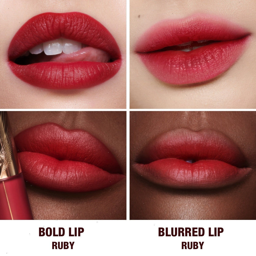 Ruby Blur is a cool-toned, ruby red shade. Wear it BLURRED for 'just-bitten' lips and BOLD for the perfect red carpet red!