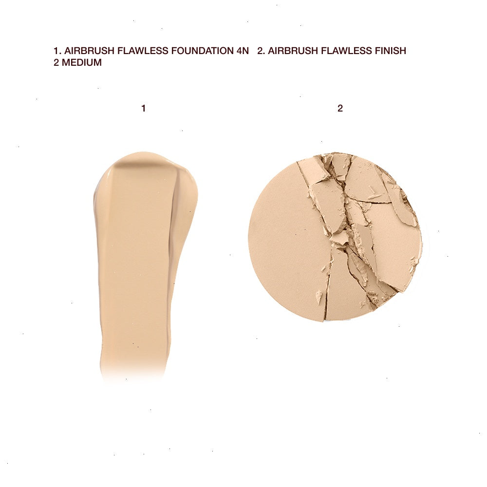 ONLY available on charlottetilburymart.com and the app, this kit includes my NEW! AIRbrush Flawless Foundation formula to create flawless, full-coverage foundation looks, my NEW! matte setting spray for blurred, matte skin that looks airbrushed, and my award-winning AIRbrush Flawless Finish powder for instant red-carpet skin.