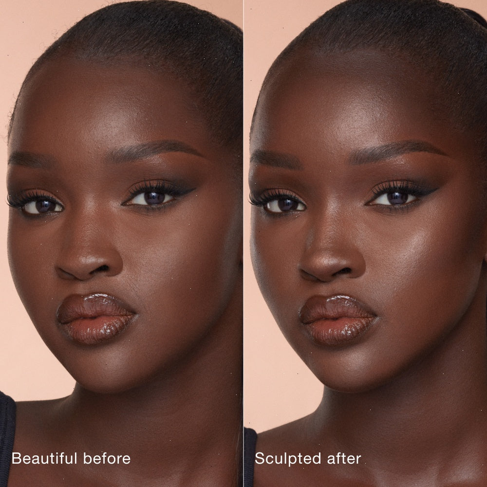 Swipe to sculpt, darlings! Dot the magic cushion applicator onto the hollows of your cheeks, forehead, and jawline, then blend with my Hollywood Complexion Brush. Just like that, your cheekbones appear higher, your features appear lifted, and your facial framework looks more defined.